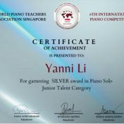 2024年WPTA新加坡国际钢琴比赛少年天才组银奖